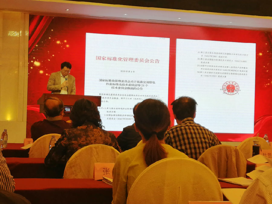 國家市場監(jiān)督總局孫旭亮處長到會宣讀了國家標準化管理委員會公告文件,傳達了國家有關標準化工作的政策和工作重點。新一屆標委會由63名成員組成、田廣范先生為主任委員,我公司陳建平先生再次當選為副主任委員。